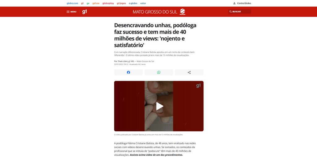 "Desencravando unhas, podóloga faz sucesso na web e acumula mais de 40 milhões de views."